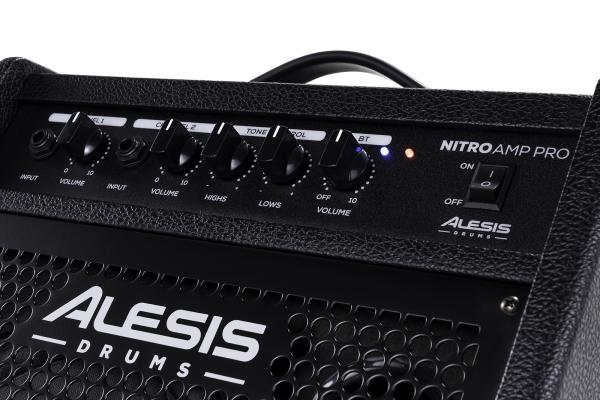 The Nitro Amp Pro from Alesis Drums is an amplifier specially designed to faithfully reproduce the sound of any electronic drum kit. Featuring 80W peak amplification combined with an 8-inch speaker and Bluetooth audio input with dedicated volume, all integrated in a slanted monitor format, the Nitro Amp Pro is the ideal solution for drummers who want to remove their headphones and play at full volume with a rich, balanced sound.