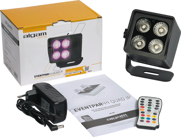 This small, ultra-versatile PAR will surely find its place at practically all your events, indoors and outdoors. Robust and well-designed, the EVENT PAR 44 QUAD IP features a lithium battery providing up to 20 hours of operation in Automatic mode (8 hours in full color mode), an IP65 rating ensuring protection against outdoor weather, and a Wireless DMX control protocol for remote control without the need for cables! What's more?