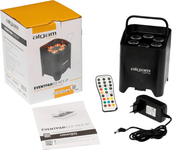 The EVENT PAR 612 HEX IP is a professional PAR projector designed to meet the needs of the most demanding performances. Thanks to its integrated lithium-ion battery and IP65 protection rating, it can be used both indoors and outdoors, whatever the conditions. Its compact and robust design allows for quick and flexible installation for a variety of events: concerts, weddings, or temporary architectural installations.