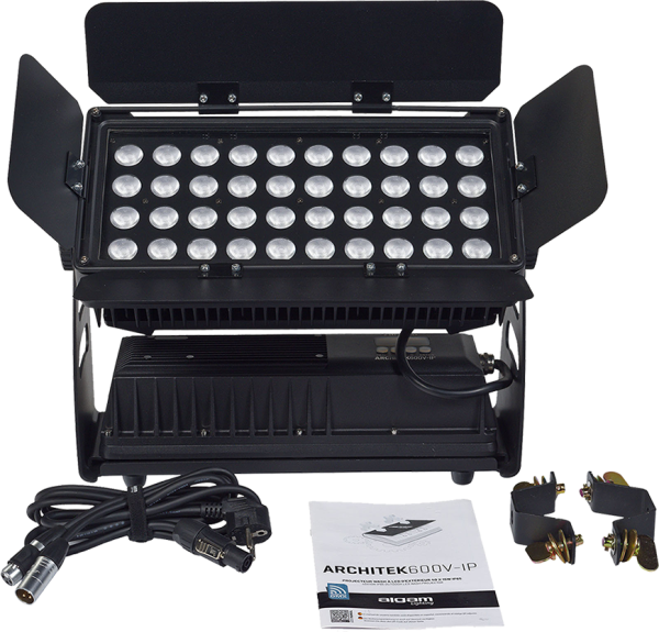 The FL600V-IP is the ideal outdoor projector for effectively illuminating the facades of any building or monument, as well as for any outdoor event. Its 40 x 15W RGBW LEDs guarantee an intense luminous flux and a precise and accurate color palette, which can be effectively directed thanks to its tilting bracket and the 4 barn doors that allow for precise control of the beam angle. IP65 rated and DMX controllable, the FL600V-IP is designed to withstand water jets and dust ingress.