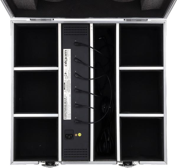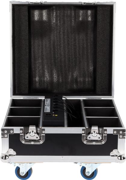 This wooden flight case has been specially designed to provide optimal protection for your six EVENT PAR 412 HEX IPs during travel and storage. Equipped with a charging dock, it allows you to safely charge your EVENT PAR 412 HEX IPs directly in the flight case.
