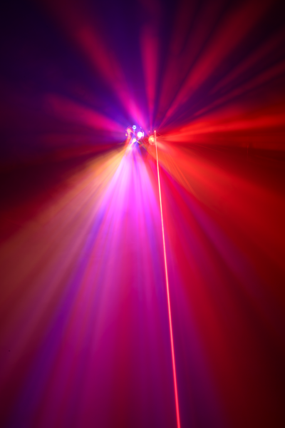 These two LED effects are combined with a multi-point red/green laser that projects multiple beams across the room, and a strobe effect that provides a wide variety of dynamic effects to liven up any party.