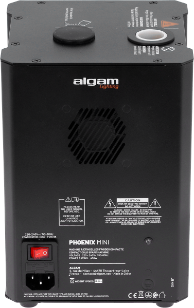 The Phoenix Mini proves that you don't need to be big to create a grand effect. With 450W of power, it projects bright, cold sparks up to 5 meters high, without dangerous heat or smoke. Ideal for enhancing a key moment or marking a grand finale, it delivers a performance worthy of the biggest shows, while being completely safe for both indoor and outdoor use. An elegant solution that will amaze your guests without any risk.