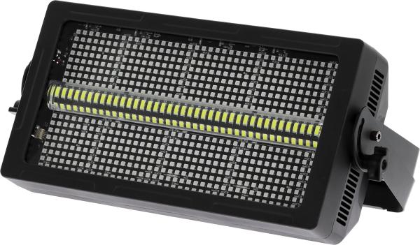 The BLZ STROBE is a powerful projector that combines an 8-zone strobe equipped with 80 white LEDs and 640 RGBW LEDs distributed across 4 upper and 4 lower zones to illuminate and generate effects for all your events. The central row of high-power white LEDs delivers crisp, intense strobe effects, highlighted by a pass-through optical tube. Synchronized scrolling, chase, and flash animations enhance the key moments of your show. The 8-zone RGBW wash matrix, located on either side of the central strobe, generates vibrant or pastel colors, dynamic animations, and powerful solid colors, adding depth to the stage. The combination of the ultra-impactful white strobe and the matrixable color wash is ideal for enriching any stage design, whether in a club, on stage, or at a larger event.