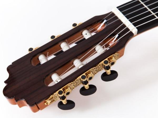 Altamira's N600 is ideal for advanced classical guitar students at secondary or tertiary level. This guitar has a solid top and all solid Indian rosewood back and sides, with a strong rich classical tone suitable for the stage. The top of the guitar is the vital component for generating sound, vibrating as each string is plucked. With solid top guitars, the more this soundboard vibrates, the more this single piece of wood adapts and ‘opens up’ which improves the quality of sound as the guitar ages.