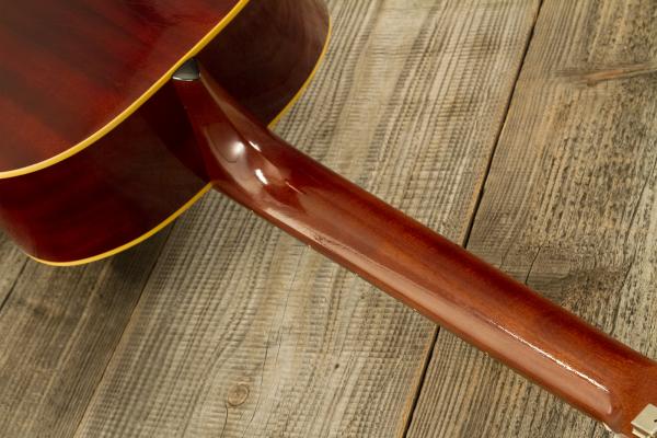 Its flawless solid lutherie is made from the best sounding and most beautiful tonewoods : torrefied Sitka Spruce top, Mahogany back/sides, "Scalloped X" bracing, Mahogany neck and Santos Rosewood fingerboard / bridge.
