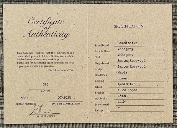 Hand built in England in very small quantities, ATKIN The Thirty Three #3851 acoustic guitar is a magnificent "Round Shoulders" Dreadnought, that looks and reacts as a true vintage instrument.