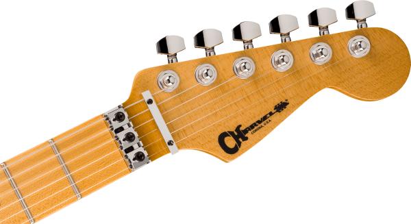The top-mount Floyd Rose 1000 series double-locking tremolo delivers rock-solid tuning stability with unlimited dive-bomb devastation and soaring flutter effects, while streamlined electronics featuring a single lo-friction volume pot and 5-way blade switch put pure tone at your fingertips. This is your gateway to sonic excellence – authentic 1980 Charvel craftsmanship meets tomorrow’s innovation in one irresistible package.