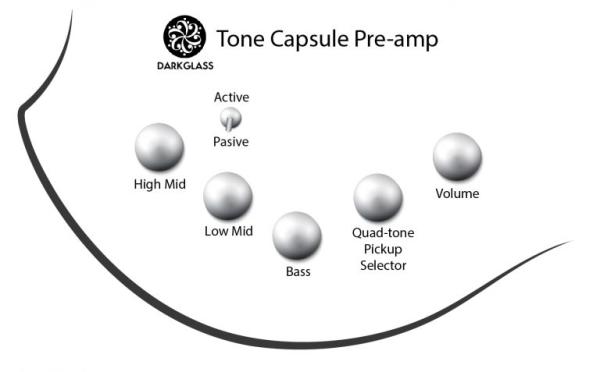 - Controls : Vol, 4-way rotary pickup selector, Bass, Mid, Treble, Active/Passive switch