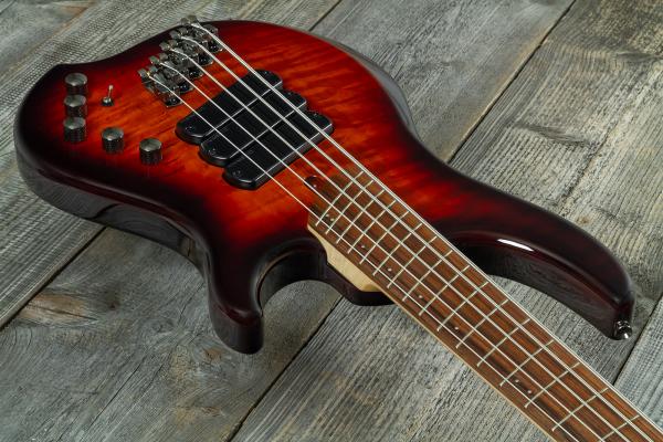DINGWALL Combustion 5 3-Pickups (CB3-VB5P) is a solid body electric 5-string bass with active/passive EMG electronics, Swamp Ash body, high stability 5-pieces Maple neck, 24 fan frettes multi-scale fingerboard.