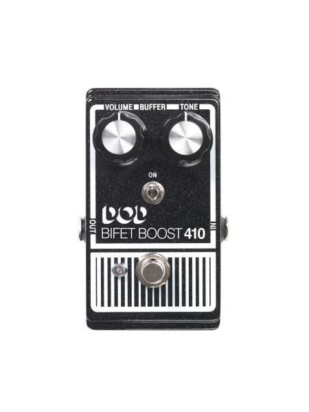 For such a simple layout, there’s a lot going on with the 410. In addition to gobs of boost, there is also a “tilt” tone control, and a unique buffer scheme. When the Buffer Switch is on, it is always on, even when the pedal is in bypass. When the Buffer Switch is off, the pedal is true bypass. This allows the 410 to be used as a buffered boost, unbuffered boost, line driver, stand-alone buffer, and an always-on tone sweetener with or without buffer. More than just More Me! While the 410 is based on the vintage ’70’s 410, it has a lot more tricks up its sleeve.