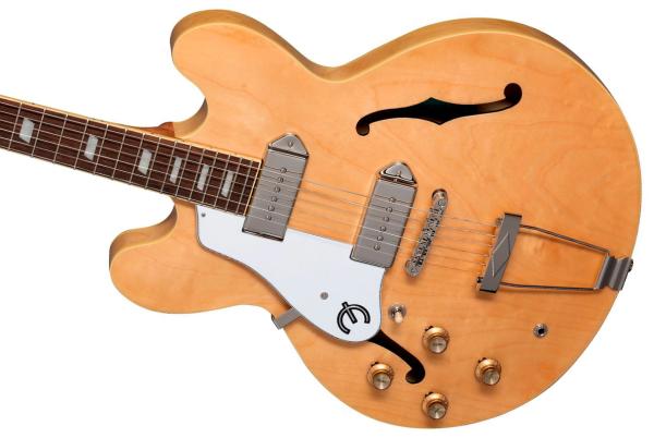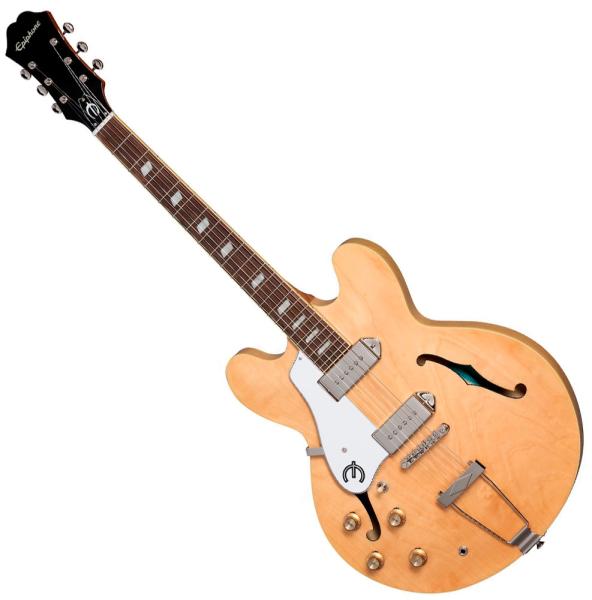 EPIPHONE Original Archtop Casino Left Handed (EOCANANH1L) semi-hollow body electric guitar features Dogear PRO P-90 pickups and a 5-ply maple body.
