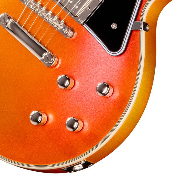 It is equipped with a LockTone™ Tune-O-Matic™ bridge and a LockTone Stop Bar tailpiece for outstanding intonation and sustain, and Posi-Lok™ strap buttons keep your strap securely attached without extra hardware. The glued-in mahogany neck features a long neck tenon, an ultra-comfortable, fast-playing Modern C profile, and is topped with a bound ebony fretboard with 22 stainless steel medium jumbo frets and elegant Super 400-style pearloid split block inlays. The fretboard also features a 10”-14” compound radius, making chording and string bends equally effortless. The bound Kalamazoo headstock is outfitted with locking Grover® Rotomatic® tuners with kidney buttons, a Graph Tech® nut, and features the Epiphone logo and the Custom split diamond inlay in mother-of-pearl.