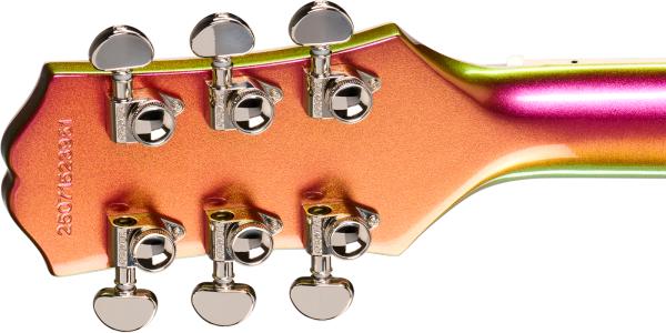 The bound Kalamazoo headstock is equipped with locking Grover® Rotomatic® tuners with kidney buttons, a Graph Tech® nut, and the Custom split diamond and Epiphone logo, both inlaid in mother-of-pearl.
