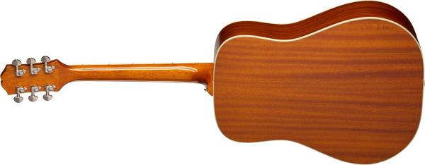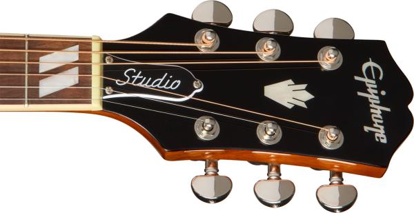 The EPIPHONE Inspired by Gibson Hummingbird Studio (EASHBHCNH1) is part of the Epiphone Studio Acoustic Collection. These guitars have been completely reimagined to offer the most authentic and affordable acoustic guitars inspired by iconic Gibson designs. The Hummingbird Studio offers a blend of classic design and modern functionality and was designed to appeal equally to beginners and seasoned players alike. Based on the iconic Gibson Hummingbird acoustic guitar that has been embraced by players across a wide range of musical genres, the Hummingbird Studio has a square shoulder dreadnought body and 24.75” scale length, just like the Gibson guitar that inspired it. The Hummingbird Studio delivers a rich, balanced tone with excellent projection, making it an ideal choice, no matter which musical styles you want to explore. The Hummingbird Studio has a layered mahogany body with six-ply antique ivory and black binding on the top, four-ply antique ivory and black binding on the back, and a solid spruce top for a responsive, balanced tone with excellent dynamic range that will sound even better as it ages. The mahogany neck is joined to the body with a glued-in tapered dovetail neck-to-body joint and features a Rounded C profile that ensures comfortable playability. The neck is topped with a bound rosewood fretboard equipped with 20 standard frets and dressed up with the classic split parallelogram inlays that are one of the hallmarks of the Hummingbird design. The other ends of the strings are routed over a compensated plastic saddle and are anchored to the belly-up rosewood bridge with ivory-colored bridge pins. We also included other details that give the Hummingbird Studio even more vintage-style visual appeal, including a Hummingbird tortoise shell-colored pickguard with the iconic Hummingbird graphics, high-quality Grover® Rotomatic® tuners for precise and stable tuning, and a 60s Kalamazoo-style headstock with the Epiphone logo and Gibson Crown proudly inlaid in mother of pearl. The Hummingbird Studio comes with Fishman electronics, including an S-Core under-saddle pickup and Fishman™ Presys VT preamp with soundhole-mounted volume and tone controls that are fast and easy to access for the player while remaining nearly invisible to the audience. The Epiphone Hummingbird Studio has a gloss finish and is offered in two vintage-inspired colors—Antique Natural and Heritage Cherry Sunburst. Both right and left-handed versions are available. A standard gig bag is also included.