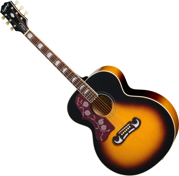 We also included other details that give the J-200 Studio even more vintage-style visual appeal, including a classic J-200 style tortoise shell-colored pickguard with the legendary two-color J-200 graphics, Epiphone Deluxe tuners with Keystone buttons, and a bound 60s Kalamazoo-style headstock with the Epiphone logo and Gibson Crown proudly displayed in mother of pearl. The J-200 Studio comes with Fishman® electronics, including an S-Core under-saddle pickup and Fishman Presys™ VT preamp with soundhole-mounted volume and tone controls that are quick and easy to access for the player while being nearly invisible to the audience. The Epiphone J-200 Studio has a gloss finish and is offered in two vintage-inspired colors—Natural and Vintage Sunburst. Both right and left-handed versions are available. A standard gig bag is also included.