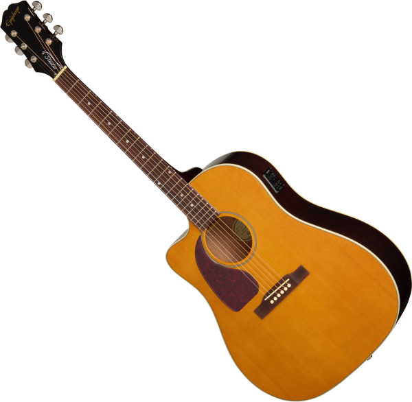 Based on the classic Gibson J-45 “The Workhorse,” the J-45 Studio has a sloped shoulder body and 24.75” scale length, just like the Gibson model that inspired it. The J-45 Studio delivers a warm, rich tone with exceptional clarity, making it ideal for a wide range of musical styles. The J-45 Studio has a layered mahogany body with four-ply ivory and black binding on the top, single-ply ivory binding on the back, and a solid spruce top for a responsive, balanced tone with excellent dynamic range that will sound even better as it ages. The mahogany neck is joined to the body with a glued-in tapered dovetail neck-to-body joint and features a Rounded C profile that ensures comfortable playability. The neck is topped with a rosewood fretboard equipped with 20 standard frets and dressed up with simple pearloid dot inlays. The other ends of the strings are routed over a compensated plastic saddle and are anchored to the belly-up rosewood bridge with ivory-colored bridge pins. We also included other details that give the J-45 Studio even more vintage-style visual appeal, including a teardrop-shaped dark tortoise shell-colored pickguard, three-on-a-plate tuners with ivory-colored plastic buttons, and a 60s Kalamazoo-style headstock with the Epiphone logo proudly displayed in gold silkscreen. The J-45 Studio comes with Fishman electronics, including an S-Core under-saddle pickup and Fishman Presys VT preamp with soundhole-mounted volume and tone controls that are fast and easy to access for the player while remaining nearly invisible to the audience. The Epiphone J-45 Studio has a gloss finish and is offered in two vintage-inspired colors—Natural and Vintage Sunburst. Both right and left-handed versions are available. A standard gig bag is also included.
