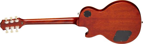 Les Paul Standard 50s Figured is crafted with a mahogany body with a maple cap, a bound 1959 Rounded Medium C-shaped mahogany neck with long neck tenon, Rosewood fretboard with classic trapezoid inlays and 22 medium jumbo frets, Epiphone Vintage Deluxe 18:1 ratio tuners, a pair of critically acclaimed Epiphone Probucker™ humbuckers™, and gold Top Hat knobs with dial pointers. This Epiphone Inspired by Gibson Original model also has the Kalamazoo headstock, Graph Tech® nut, era-appropriate wiring, and CTS® pots.