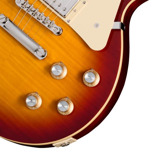 Epiphone’s Inspired by Gibson™ Collection proudly presents the EPIPHONE Inspired By Gibson Les Paul Standard 60s Figured (EIGLP6ITNHR) solid body electric guitar. This instrument lovingly recreates the feel and tone of the 1960s-era Les Pauls.