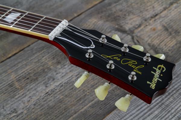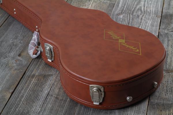 The electronics are equally impressive, with two USA Gibson Custombucker humbucking pickups with Alnico 3 magnets that are hand-wired to CTS® potentiometers, Black Beauty paper-in-oil capacitors, and a Switchcraft® pickup selector toggle switch and output jack. The Vintage Gloss finish gives the guitar a vintage appearance without looking overly aged and is nicely complimented by the nickel hardware, including the Epiphone Deluxe “Double Ring” Keystone button tuners.