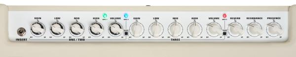 - Individual controls for channels 1 & 2 (concentric potentiometers) : Volume, Gain , Low, Mid, High, Gate