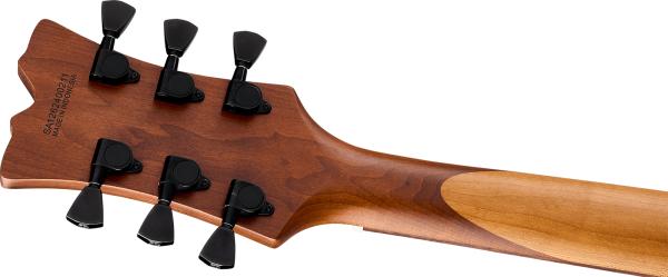 The SA-126 Standard features a Mahogany body that is chambered, with a Mahogany Centerblock added for stability and tone. Capped with a maple top and masked off natural body binding for a classic and clean look. The neck is a 22 fret 12”-16” compound Rosewood fingerboard with jumbo frets and re-imagined block inlays on a graphite reinforced baked maple neck. With a scale length of 24 and three quarters… this feels like a modern - classic that is familiar and comfortable. Finally, a spoke wheel truss rod adjustment at the butt end of the neck for easy adjustments, on the fly.