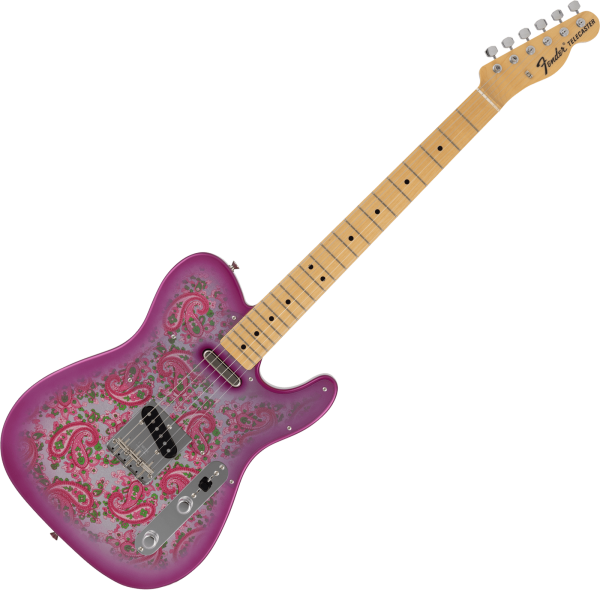 FENDER Made in Japan Telecaster Pink Paisley (5360102350) adopts a gloss finish Alder body. A vintage 7.25 inch radius "60's Oval C" shape maple neck equipped with 21 vintage style frets provides classical playability unique to the Japan series.