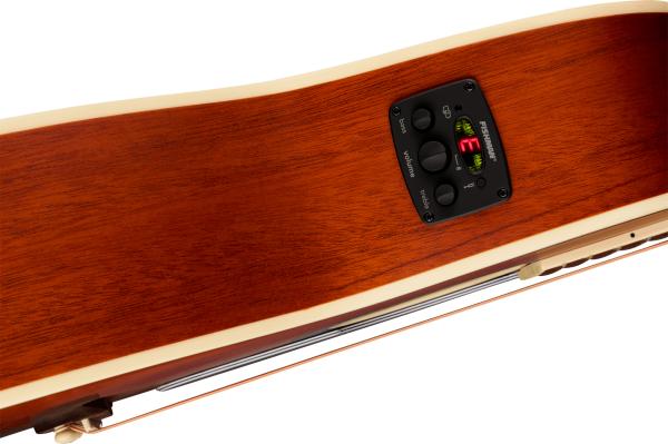 Based on Tim Armstrong's beat-up old '60s Fender® acoustic - on which he writes all of the songs for his legendary punk band, Rancid - the FENDER Tim Armstrong Hellcat (0971752022) acoustic/electric guitar is ready to slam. Armstrong has given his acoustic some modern mojo with pearl acrylic "Hellcat" logos on the third, fifth and seventh frets, with a pair of skulls adorning the twelfth fret. Other features include a solid mahogany top, scalloped bracing and Fishman® CD Acoustic preamp.