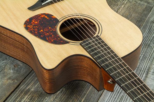 A cedar soundboard paired with mahogany back and sides produces a warm, rich tone, while a spruce top complemented by walnut back and sides delivers a sound with remarkable projection and clarity.