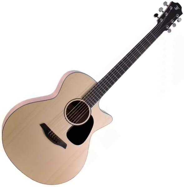 FURCH Violet GC-EM (43 mm, LRB1) steel string acoustic/electric guitar is a Grand Auditorium with cutaway, made from solid Engelmann Spruce top, solid african Mahogany back/sides, Brankowood fingerboard and LR Baggs preamp.
