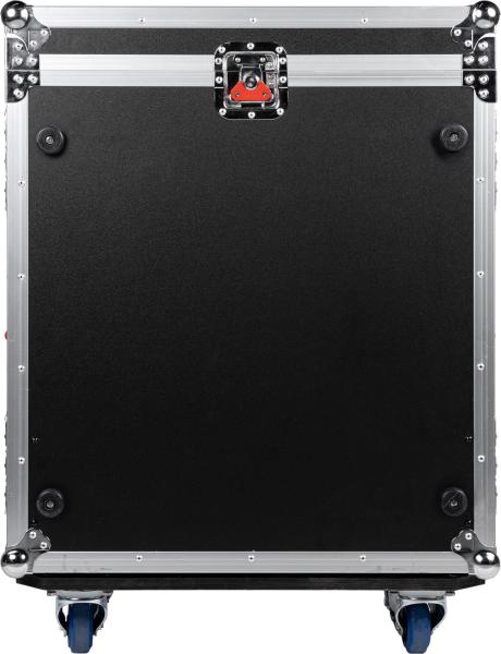 Gator's iconic red recessed latches and rubber-coated spring-loaded handles offer secure closure and a comfortable grip. The integrated castor tray, equipped with two wheels with brakes, makes transport smooth, stable and effortless.