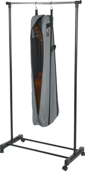 Gator Cases' innovative hanging guitar storage bag offers extra storage space by occupying unused closet space. The bag features double-rail hooks attached directly to reinforced nylon straps to ensure secure suspension of your guitar. Simply hang the bag directly on your closet rod.