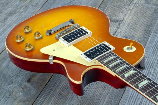The 1958 Les Paul™ Standard Reissue features all the painstaking historic construction methods of the famous '59 Reissues with a few historically-accurate spec differences that allow it to stand on its own. Like the 1958 originals, it has narrow frets which help more of the fingerboard wood to be heard in the tone profile. It also has a round, chunky neck profile for a full feel and maximum bending leverage. It has a beautiful plain maple top; each is unique and full of character. It also features Ultra Light Aging by the skilled artisans of the Murphy Lab. The Murphy Lab Aging finish treatment, paired with aged hardware, simulates decades of light play wear, giving it the unique character, vibe, and feel of an original example from the Gibson Golden Era.
