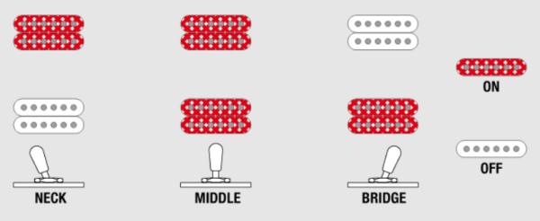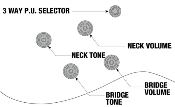 - Volume & tone for each pickup
