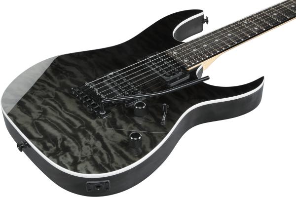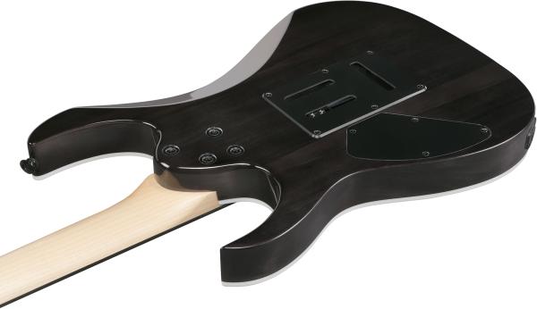 IBANEZ GIO GRG120QASP BKG solid body electric guitar, Poplar body, figured Maple top, bolt-on Maple neck, Purpleheart fretboard, 24 frets, Ibanez Infinity R humbucking pickups, traditional tremolo.