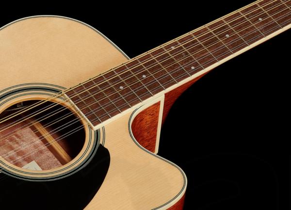 IBANEZ Performance Series PF1512ECENT is a 12-string Dreadnought acoustic/electric guitar featuring layered Spruce top, layered Okoume back/sides, Nyatoh n.eck, Laurel fingerboard and Ibanez AEQ-2T preamp with onboard tuner
