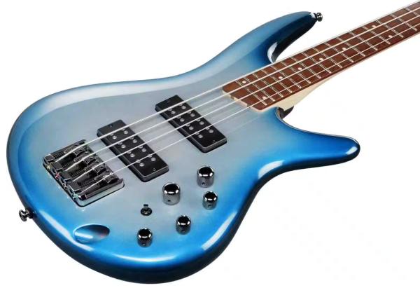 The IBANEZ Standard SR300E DOT solid body electric bass, with Okoume body, bolt-on Maple/Walnut neck, 24 frets Rosewood neck and active preamp is a confortable, ergonomic and versatile instrument.
