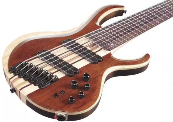 Built from splendid tonewoods (nine pieces Maple/Panga-Panga/Walnut neck-through, Ash/Okoume wings, Bubinga top, 24 fanned frets Rosewood fingerboard) and featuring versatile Ibanez electronics, the IBANEZ Workshop BTB7MS NML electric bass is a modern confortable, ergonomic and versatile instrment at a very decent price.