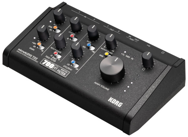 The KORG microAUDIO 722 pushes the boundaries of the traditional audio interface by incorporating the legendary analog filter from the miniKORG 700S. More than just a recording tool, it becomes a true instrument of sound creation, bridging the gap between digital and analog.