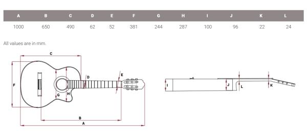 - Fishman Clasica III preamp (volume, bass, mid, treble, phase, tuner)