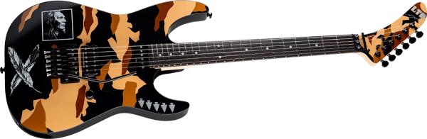 George Lynch is one of the world’s most respected and influential guitarists, and was one of the very first ESP Signature artists to join our company back in the 1980s. The LTD GL Desert Eagle is a re-imagining of his famous Kamikaze model. It features an alder body and maple neck, joined with bolt-on construction at 25.5” scale. The Kamikaze’s kanji characters and bombs have been replaced by double feathers and arrow heads in this striking design, which offers subtle black binding on the body. Its neck profile implements George’s original U shape, and it includes a Macassar ebony fingerboard, dot position markers, and 22 extra-jumbo stainless steel frets. Components on the LTD GL Desert Eagle include a Floyd Rose 1000 SE double-locking tremolo with stainless steel screws, a special low-friction volume pot, and a special pickup combination that includes a Seymour Duncan '78 pickup in the bridge, with push-pull pickup select on the single volume knob, and an ESP LS-120 single-coil in the neck position. Includes deluxe ESP hardshell case.