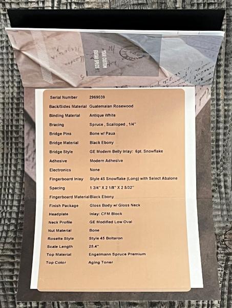 - Back/sides : solid guatemalan Rosewood