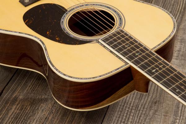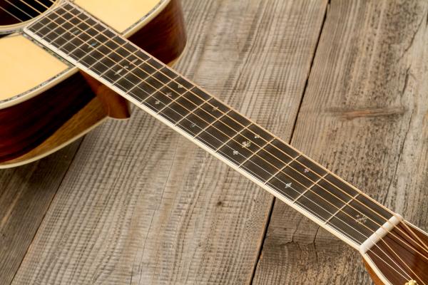 It features Solid Engelamnn Spruce top and bracing, solid guatemalan Rosewood back/sides, genuine solid Mahogany neck with Modified Low Oval and High Performance Taper profile, Ebony fretboard.
