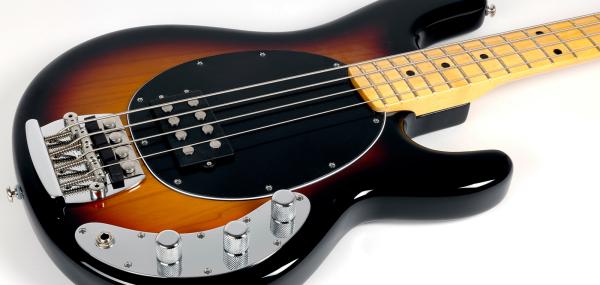 The four color options available on the StingRay retro edition—black, white, vintage sunburst, and heritage natural—replicate the look and feel of Music Man's flagship 4-string bass and are each finished with a gloss polyester topcoat.