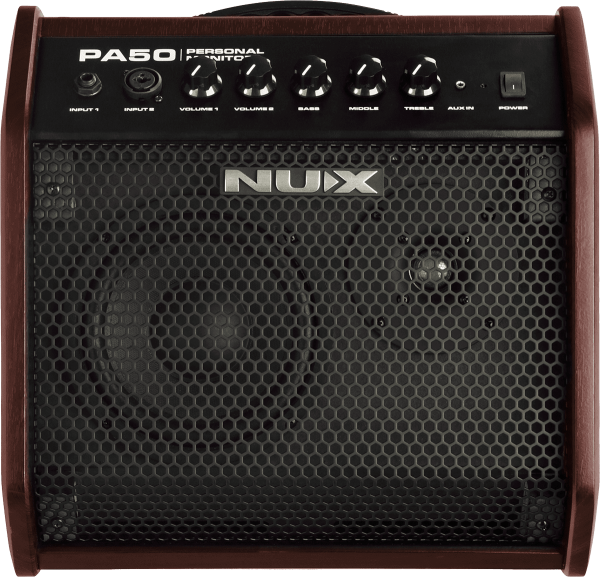 The PA-50 from NUX is a versatile 50-watt 2-channel amplifier with an ultra-sensitive 6.5" driver and 1" tweeter. It features a first channel optimized for dynamic sound designed to enhance low and high frequencies, and a second channel with a flat, accurate frequency response designed for direct compatibility with an IR charger. Equipped with a full-range dynamic driver, the PA-50 is the ideal companion for any musician, whether playing electronic drums, acoustic guitar, bass or keyboard. Its 2 inputs with independent volume control allow the connection of 2 sources, ideal for 2 musicians who wish to share the amplifier. Input 1, in TRS format, lets you connect any instrument, while input 2, in Xlr combo format, lets you connect a microphone. Extensive control of treble, midrange and bass allows users to customize their settings. Finally, the auxiliary input lets you stream music from your audio device to play over your favorite tunes.