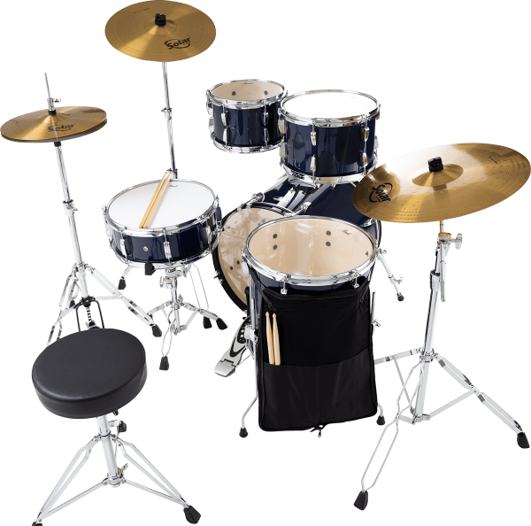 The great thing about this kit is that it's all you need to get started! Drums, double-base accessories and an extra boom stand (also considered to offer very good value for money in a competitive market), seat, Solar Sabian cymbals (14" hi-hats, a 20" ride and a 16" crash to help you get your bearings), and even a bag with sticks... All included. In addition to the standard version, this kit comes with a B-50 boom stand and an extra ride, making it the perfect kit for beginner drummers. So, honestly, at this price, you'd think today's youngsters would be so lucky!