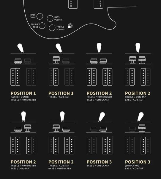 - Tone for each pickup with Push/Pull (coil split)