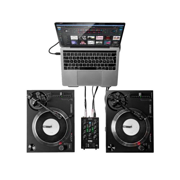 Despite its compact size, the PTB-2 offers complete and intuitive ergonomics, with two channels equipped with gain, EQ, filters, and a 45mm Ultra Glide crossfader compatible with RMX Innofader. When paired with portable turntables like the Reloop SPIN, it opens up new creative possibilities for DJing on the go, scratching, and impromptu performances.