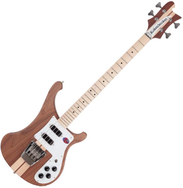 The RICKENBACKER 4030S Short Scale Bass (Walnut) is a punchy, fast-playing take on a classic silhouette, designed in collaboration with Jesse F. Keeler of Death From Above 1979. A solid maple body pairs with a neck-through maple and walnut core for lively resonance and long, even sustain, while the 30.5" scale adds a touch of snap and an easy, relaxed feel under the left hand. The rosewood fingerboard and dot markers keep things clean and familiar, and the slim 42.9 mm nut makes playing feel effortless.