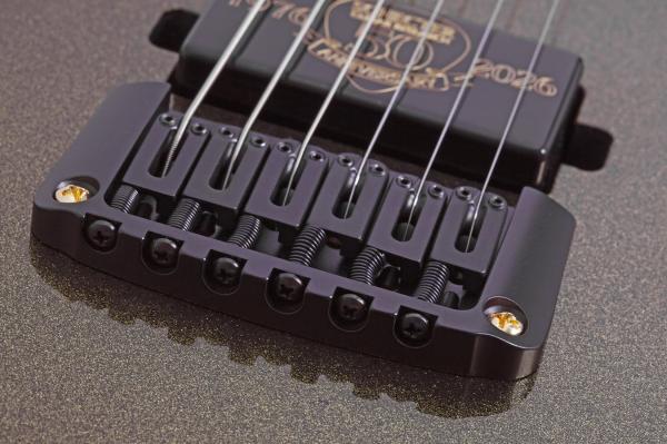 SCHECTER C-1 50th Anniversary LH is crafted with a resonant swamp ash body paired to a stunning maple/walnut/padauk thru-neck featuring Schecter’s signature Ultra Access heel carve, giving players effortless reach.